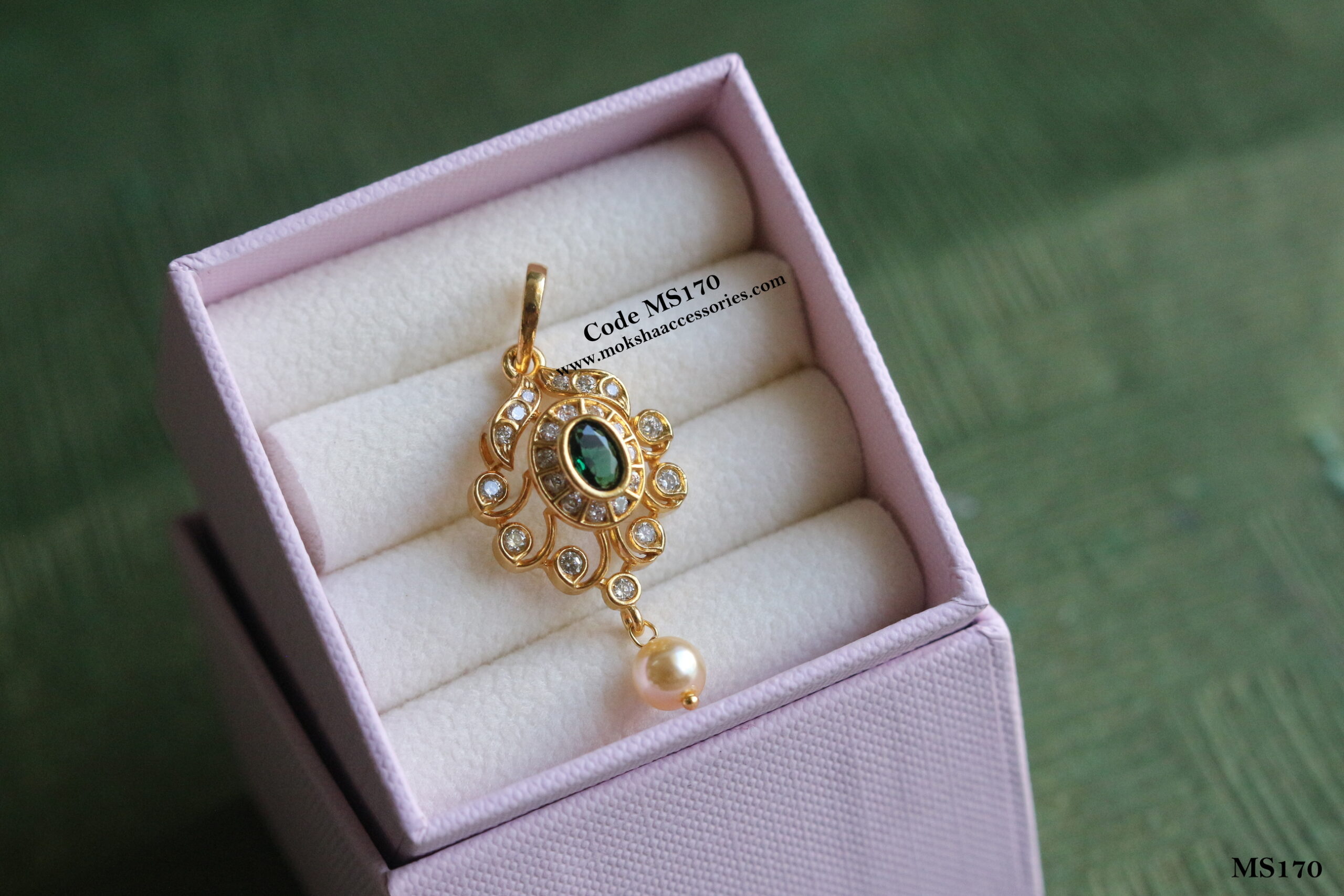 92.5 silver cz and emerald stone pendant with top hook (4 gms) quantity