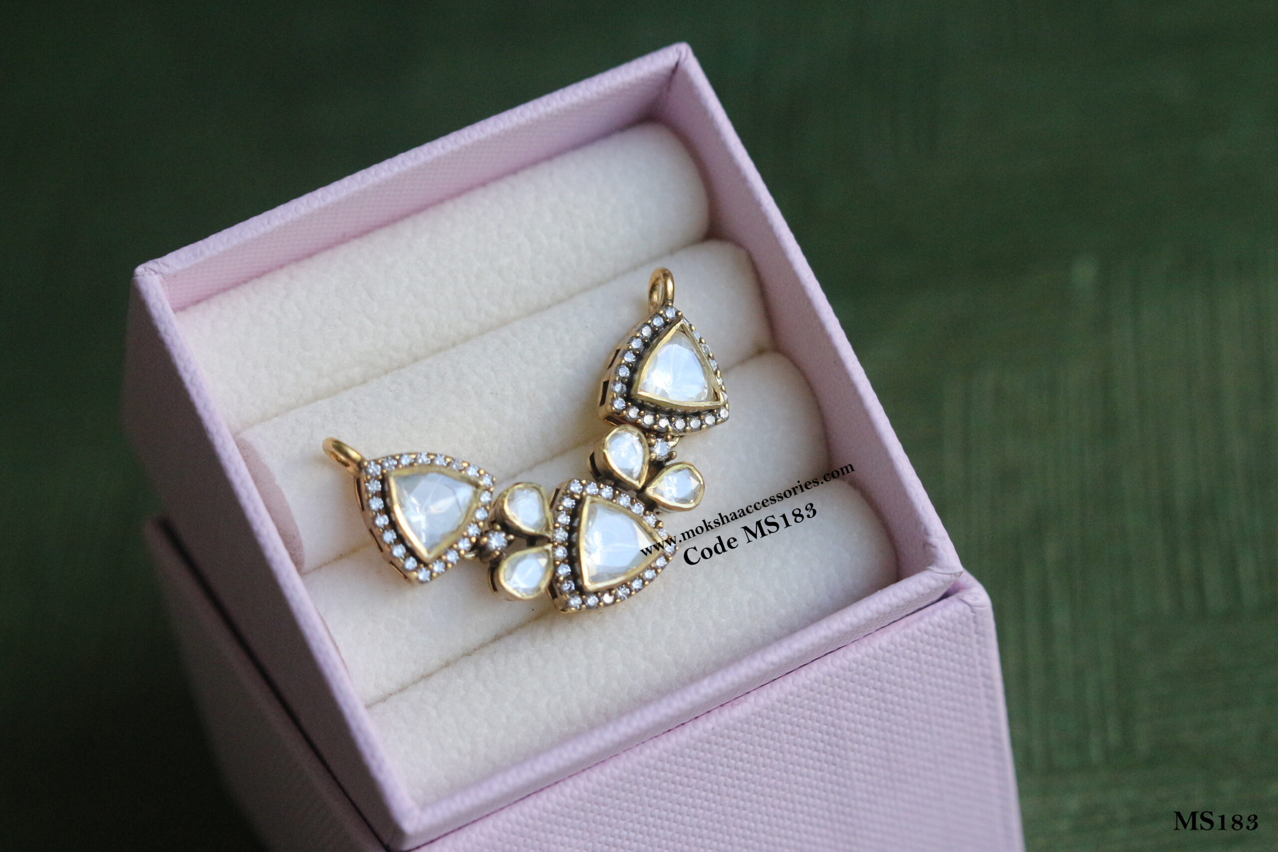 92.5 silver mozonite stone pendant with 2 side hooks (6.1 gms) quantity