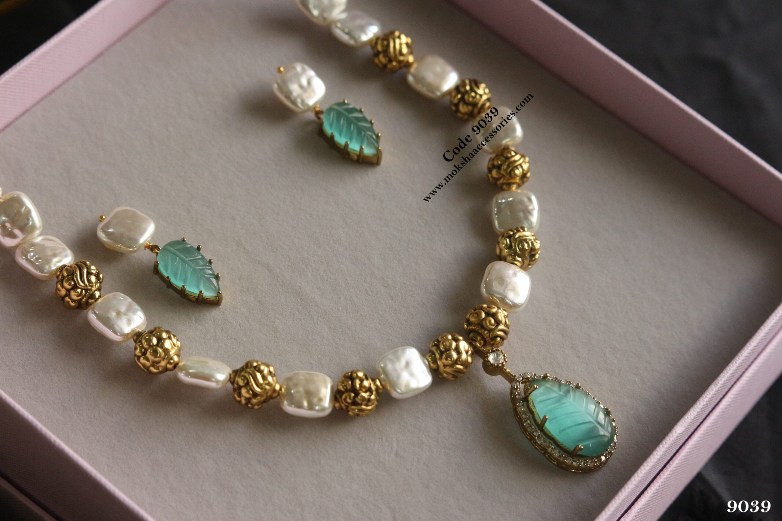 Carving stone pendant set with pearls and antique gold balls quantity