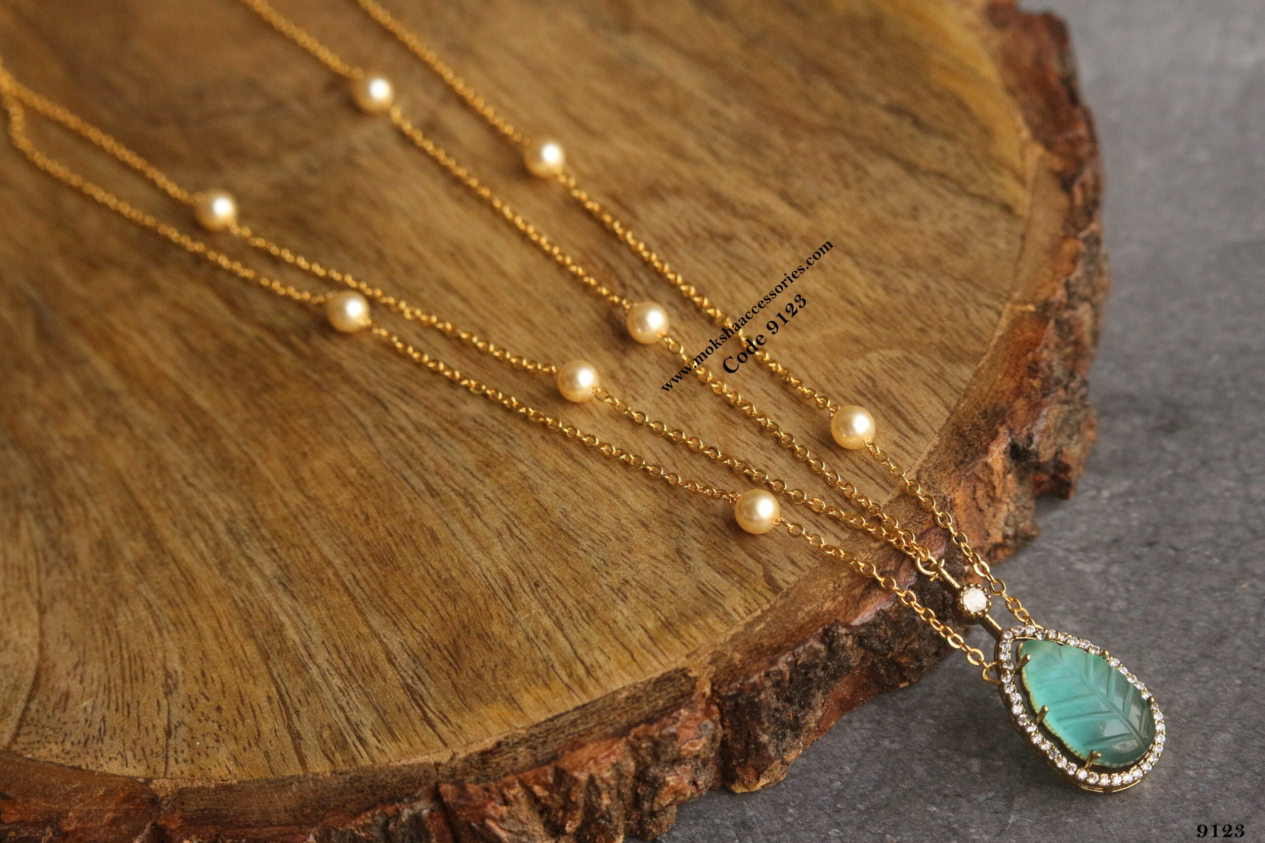 Carving stone pendant with gold chain and sarvoski pearls quantity