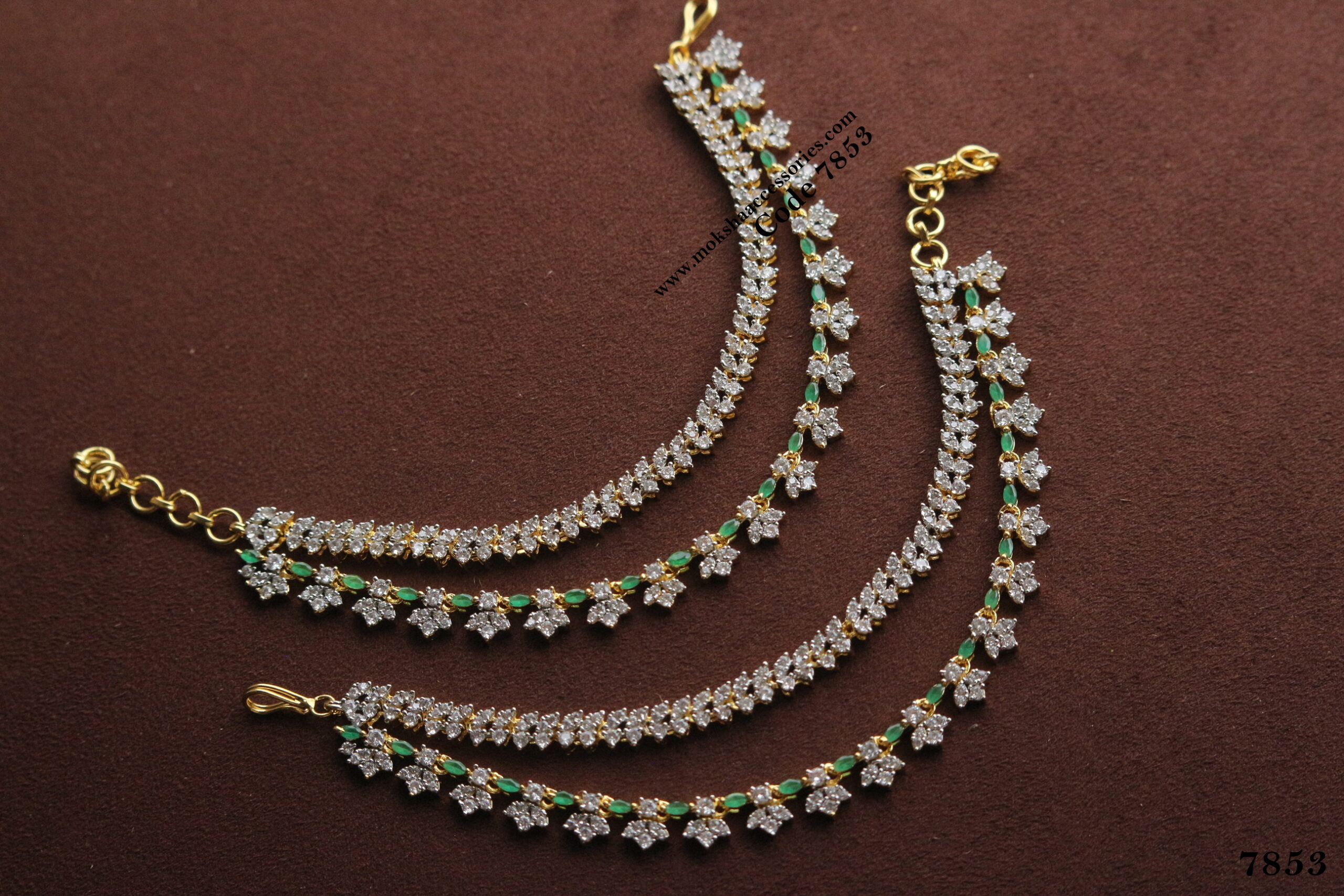 CZ diamond alike ear chains with emerald stone quantity