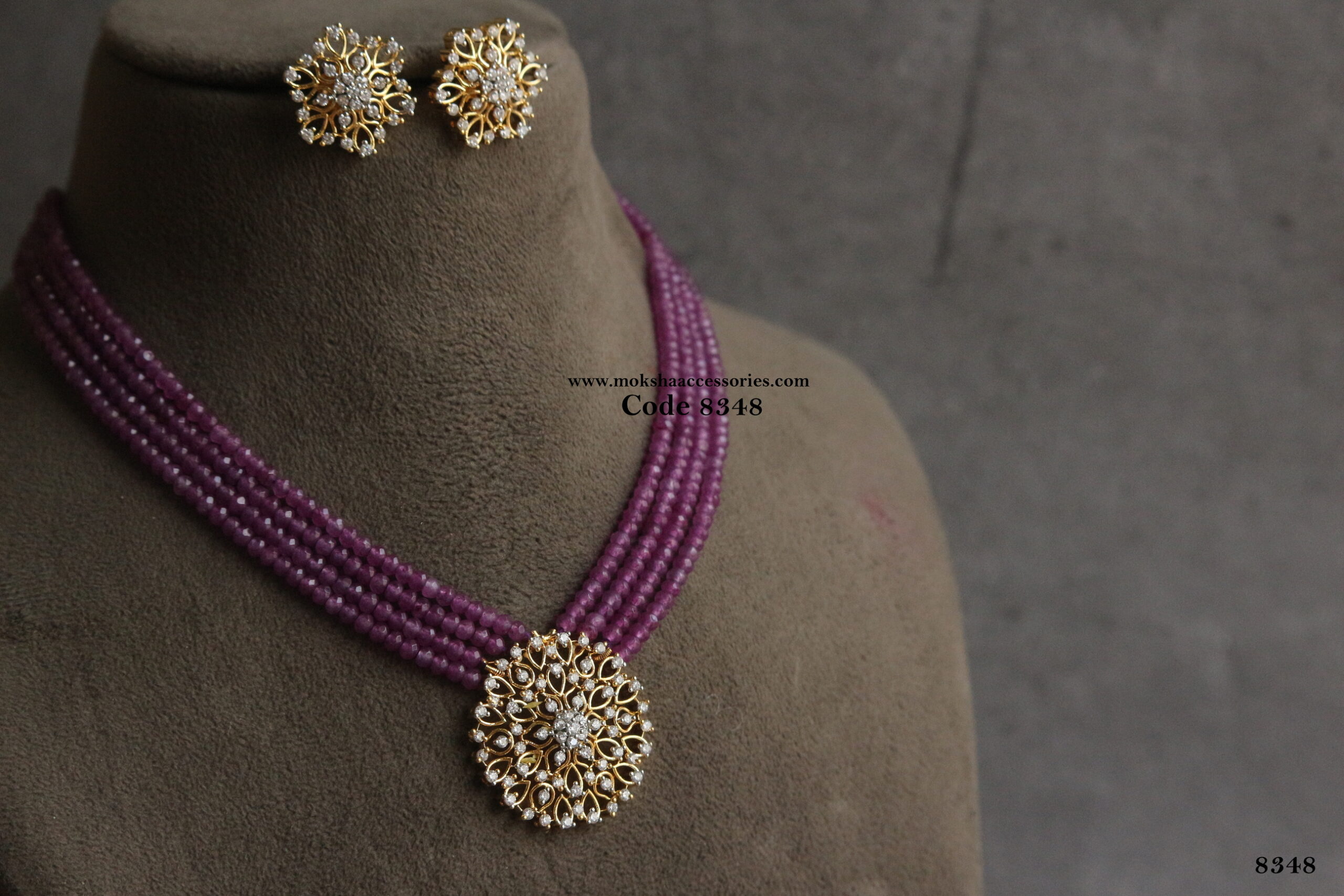CZ diamond alike pendant set with purple beads quantity