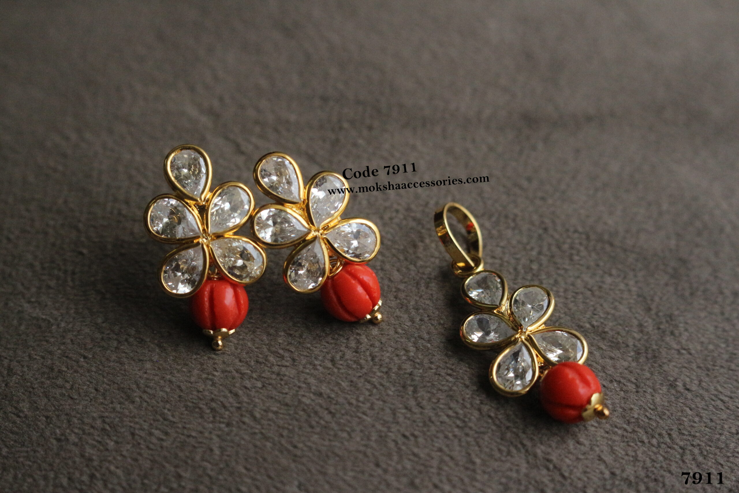 CZ pendant set with real coral pumpkin beads quantity