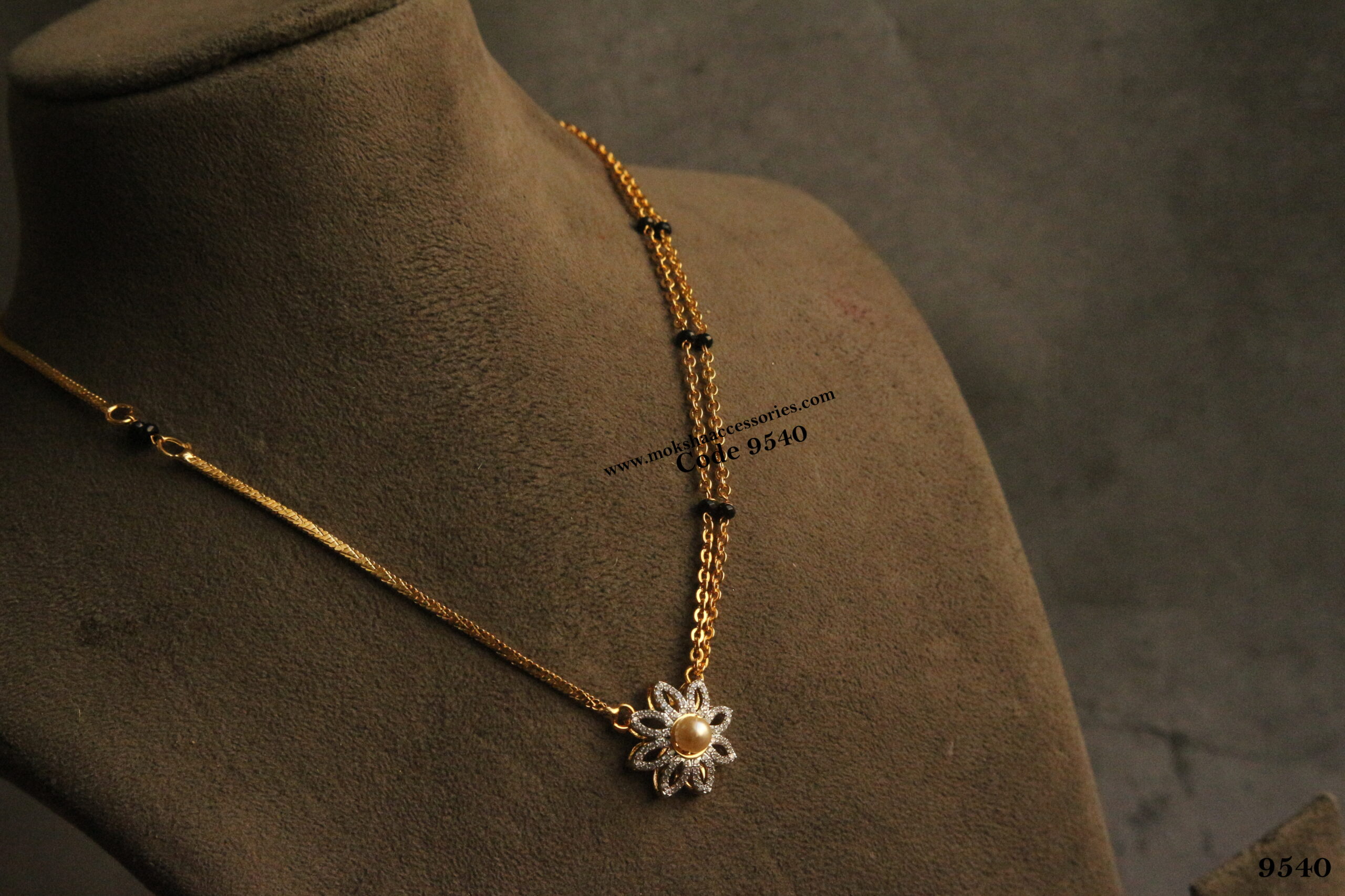 CZ pendant with gold chain and black beads quantity