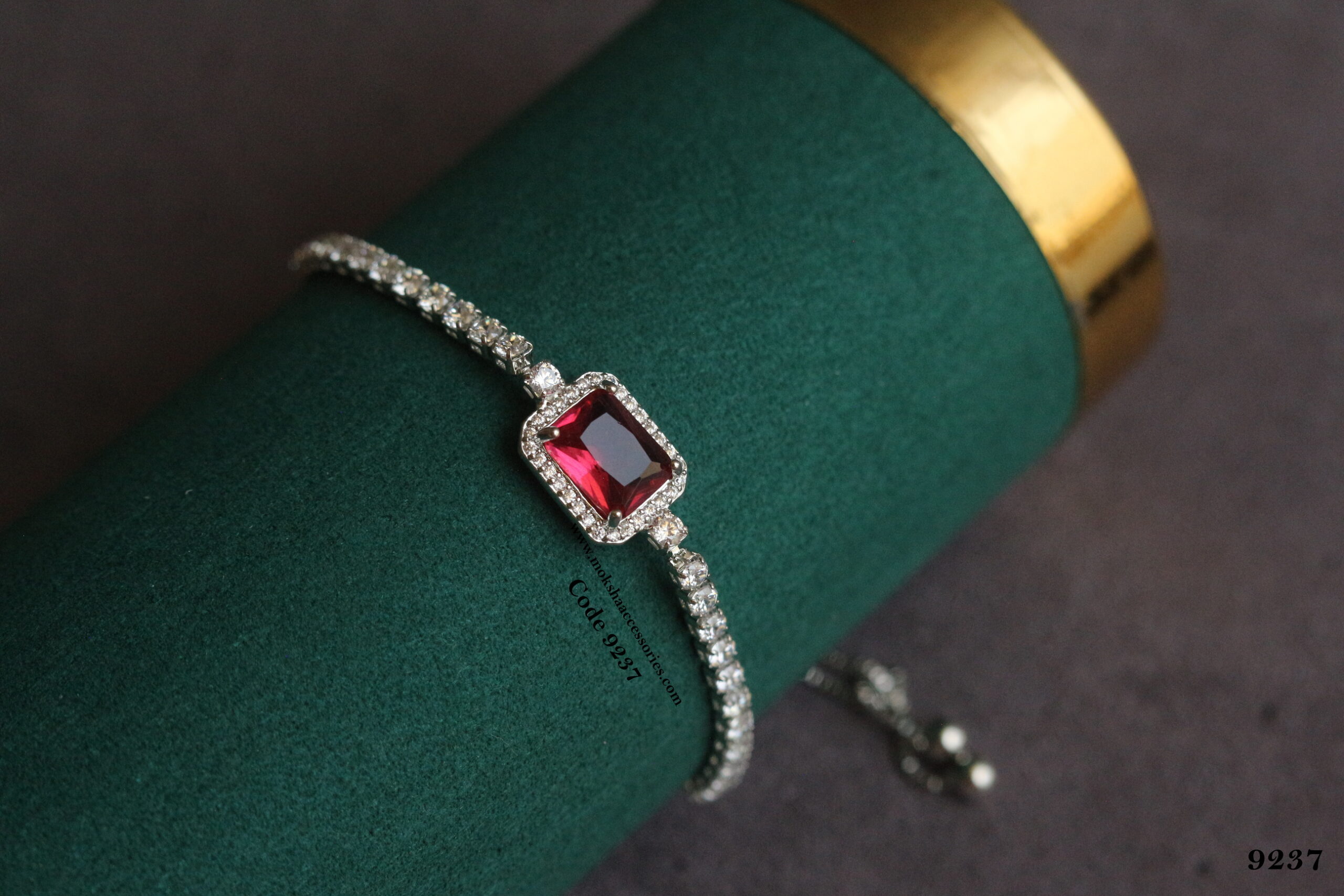CZ ruby stone silver adjustable auto lock bracelet quantity