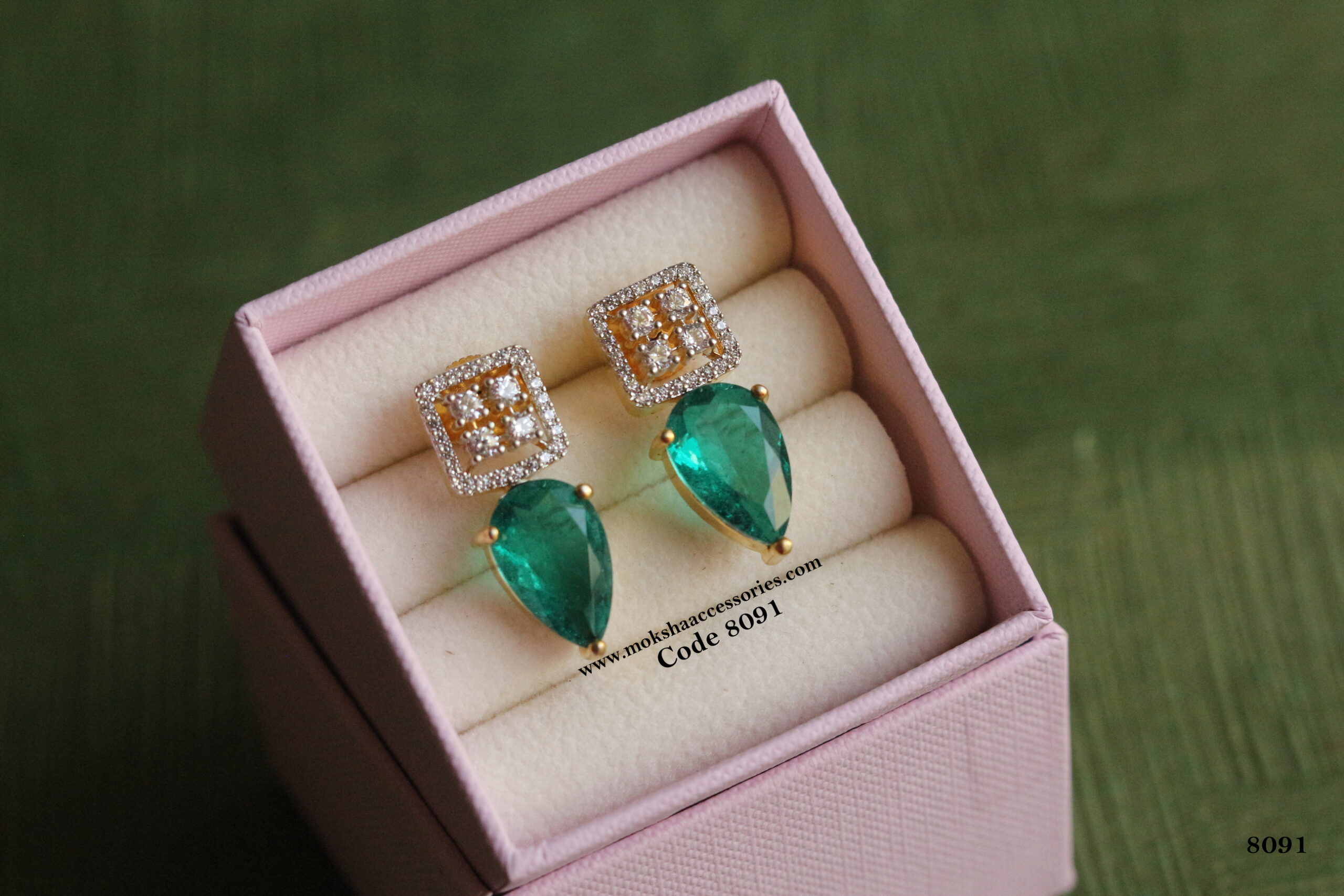 CZ studs with gree stone quantity