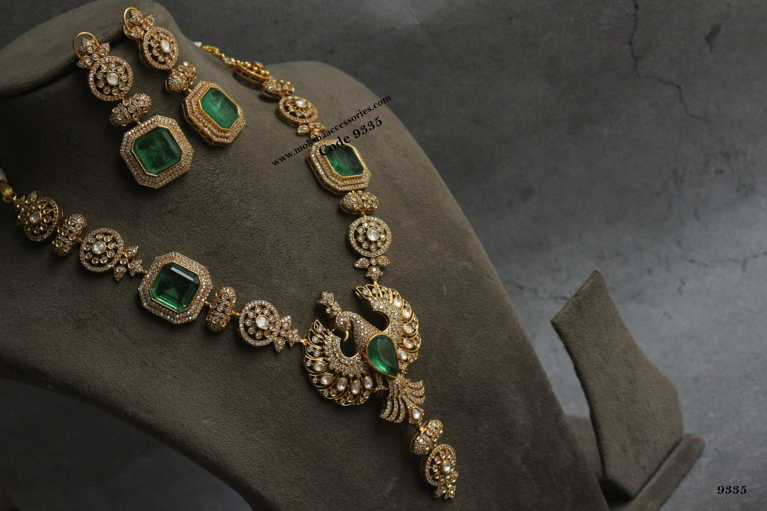 Emerald, CZ and mozonite stone neckset quantity
