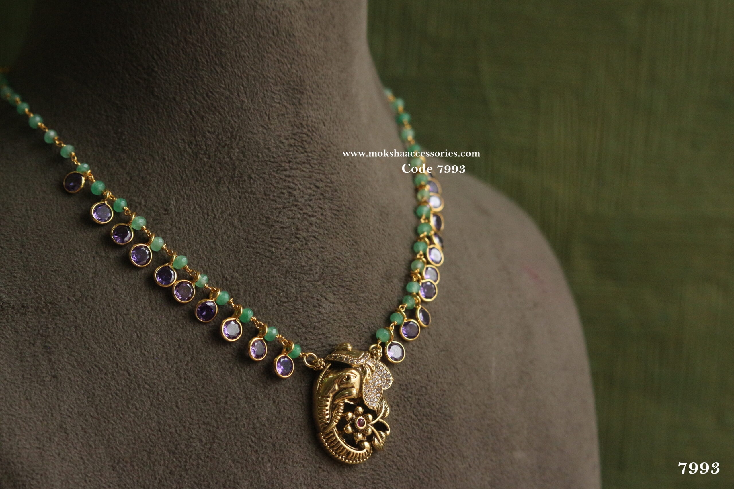 Ganesh pendant with real emerald beads and cz purple drops quantity