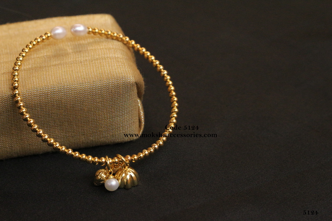 Pearl single bangle with antique ball (Sizes available)