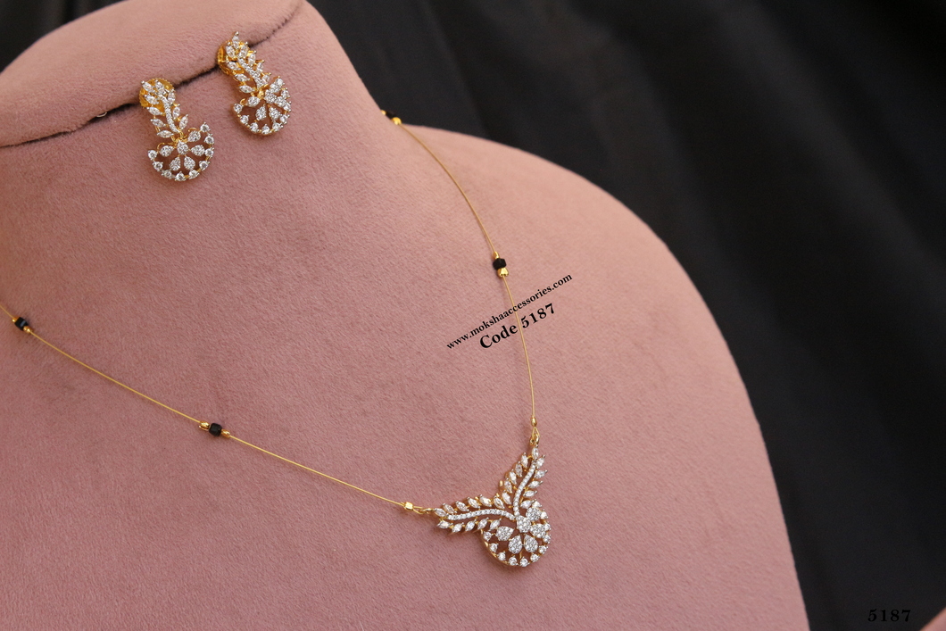 Invisible chain with cz pendant set and black beads