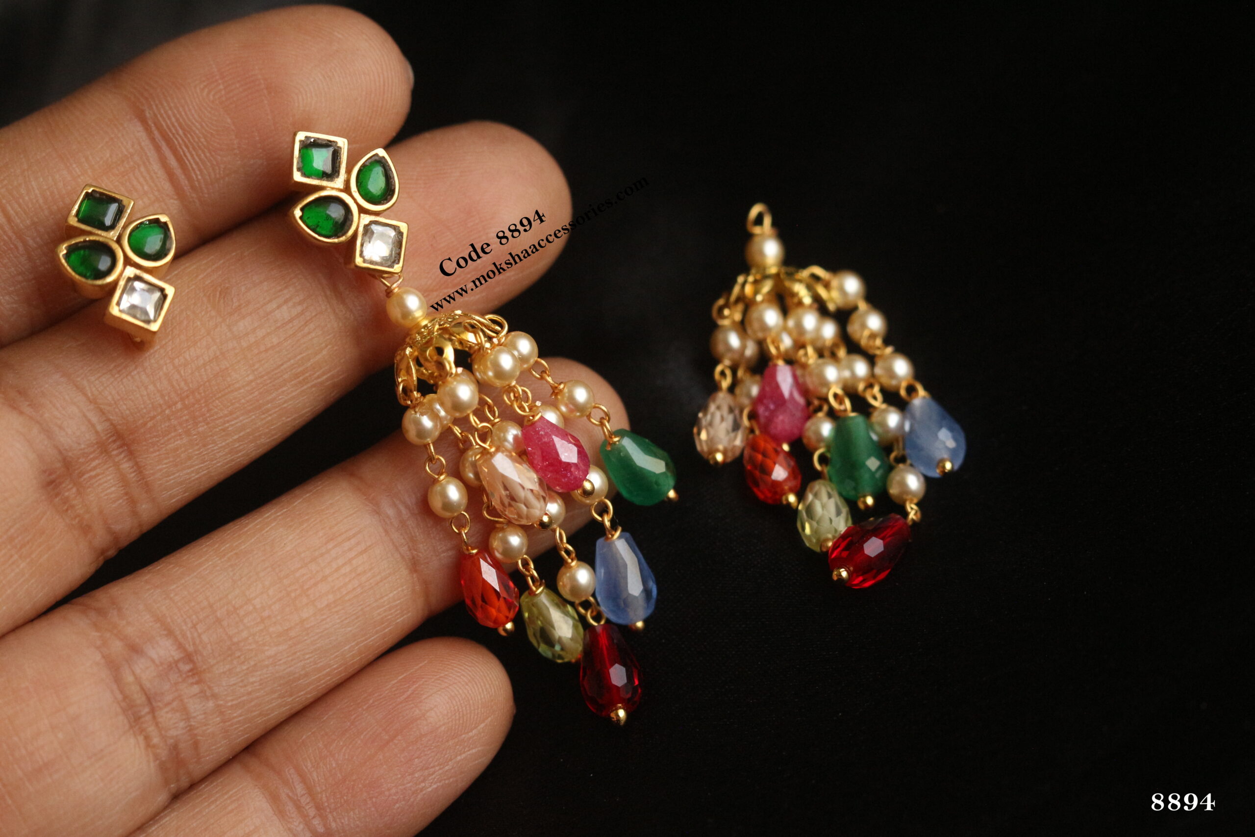 Jadaukundan Changeable cz studs with sarvsoki pearl and real cz multicolor jhumki quantity