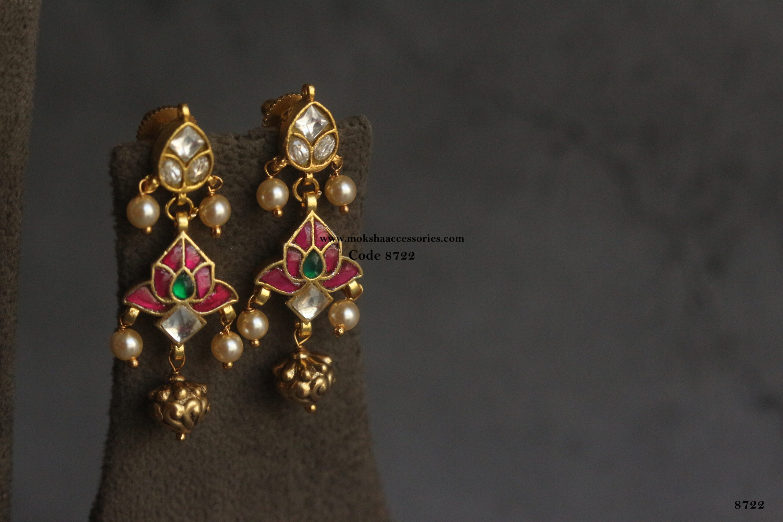 Jadaukundan earrings with antique gold drop and sarvoski pearl drops quantity