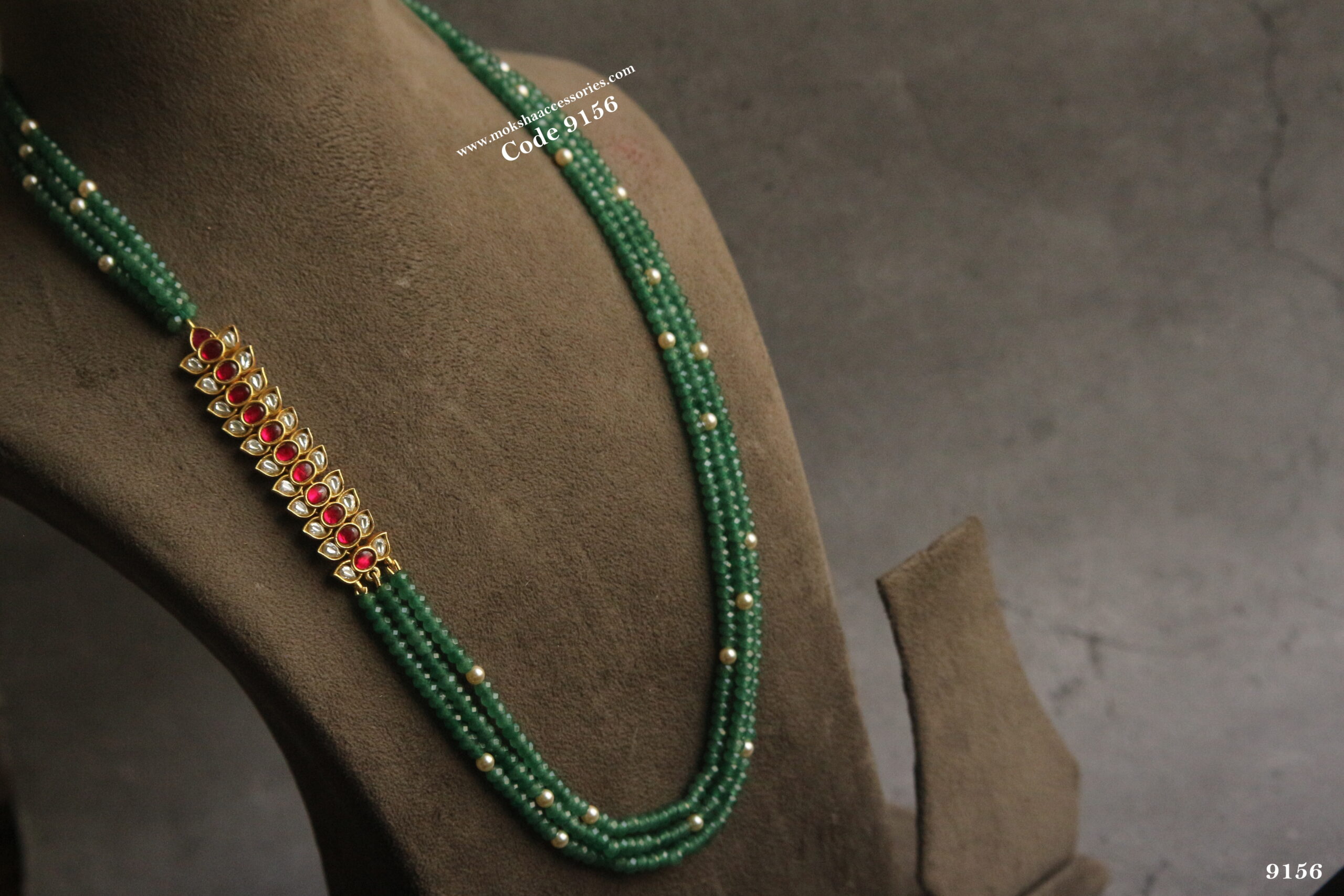 Jadaukundan pendant with emerald and sarvoski pearl mala quantity