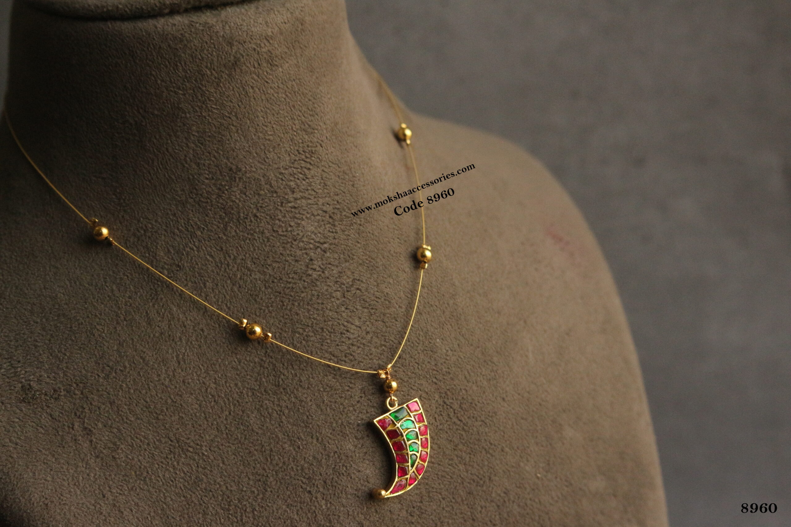 Jadaukundan pendant with gold balls and invisible chain quantity