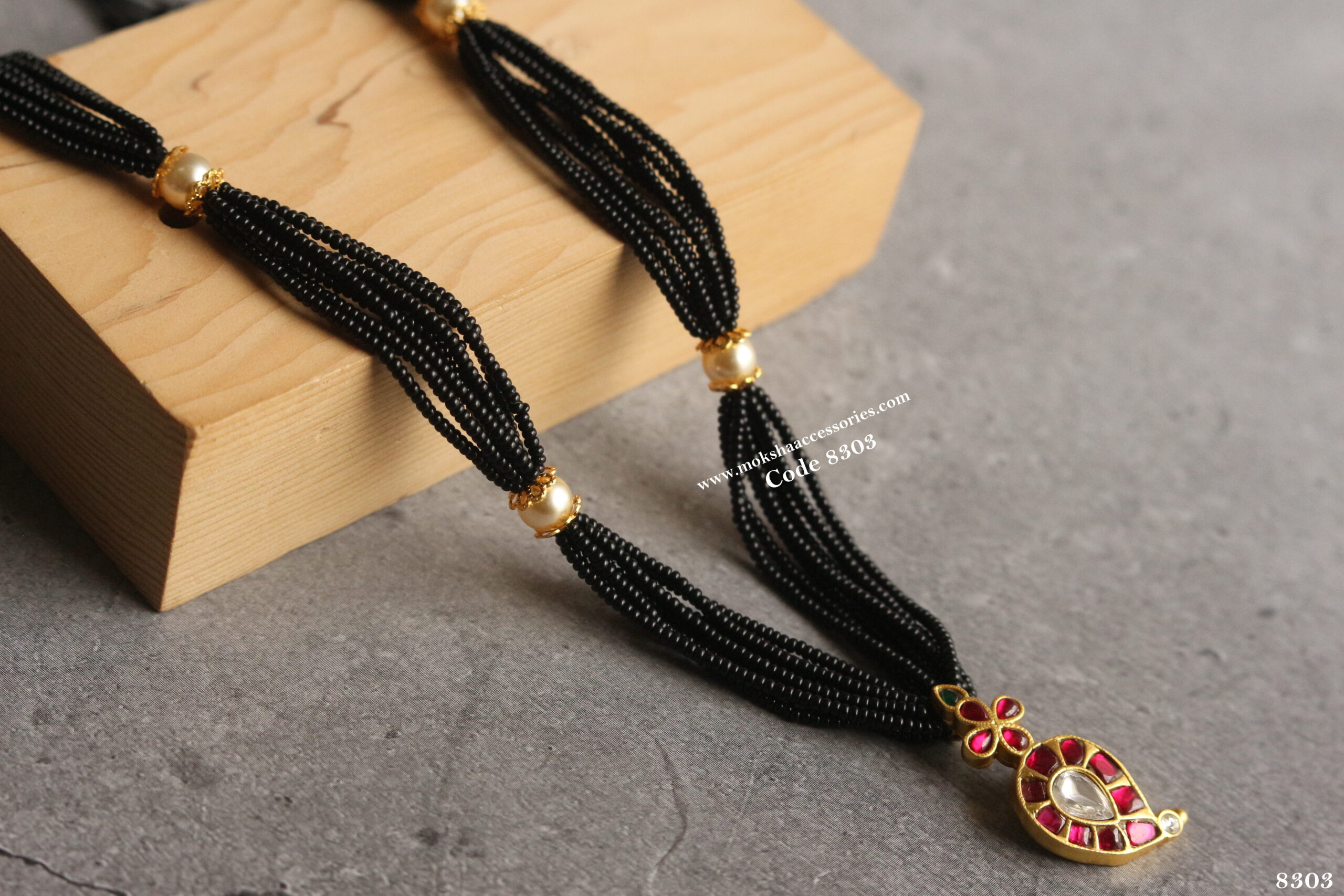 Jadaukundan pendant with sarvoski pearl and black beads quantity