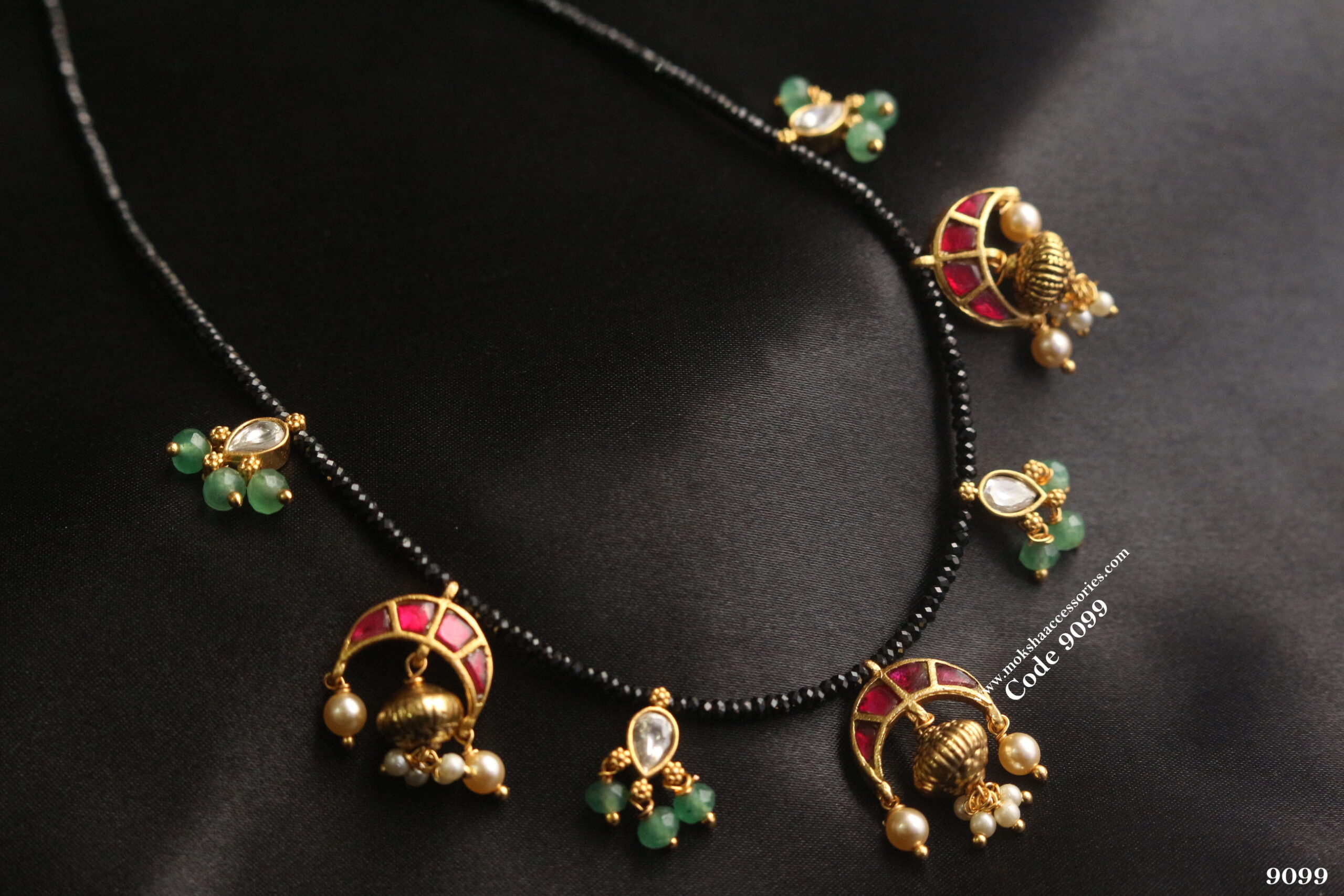 Jadaukundan pendants with black beads and nakshi balls quantity