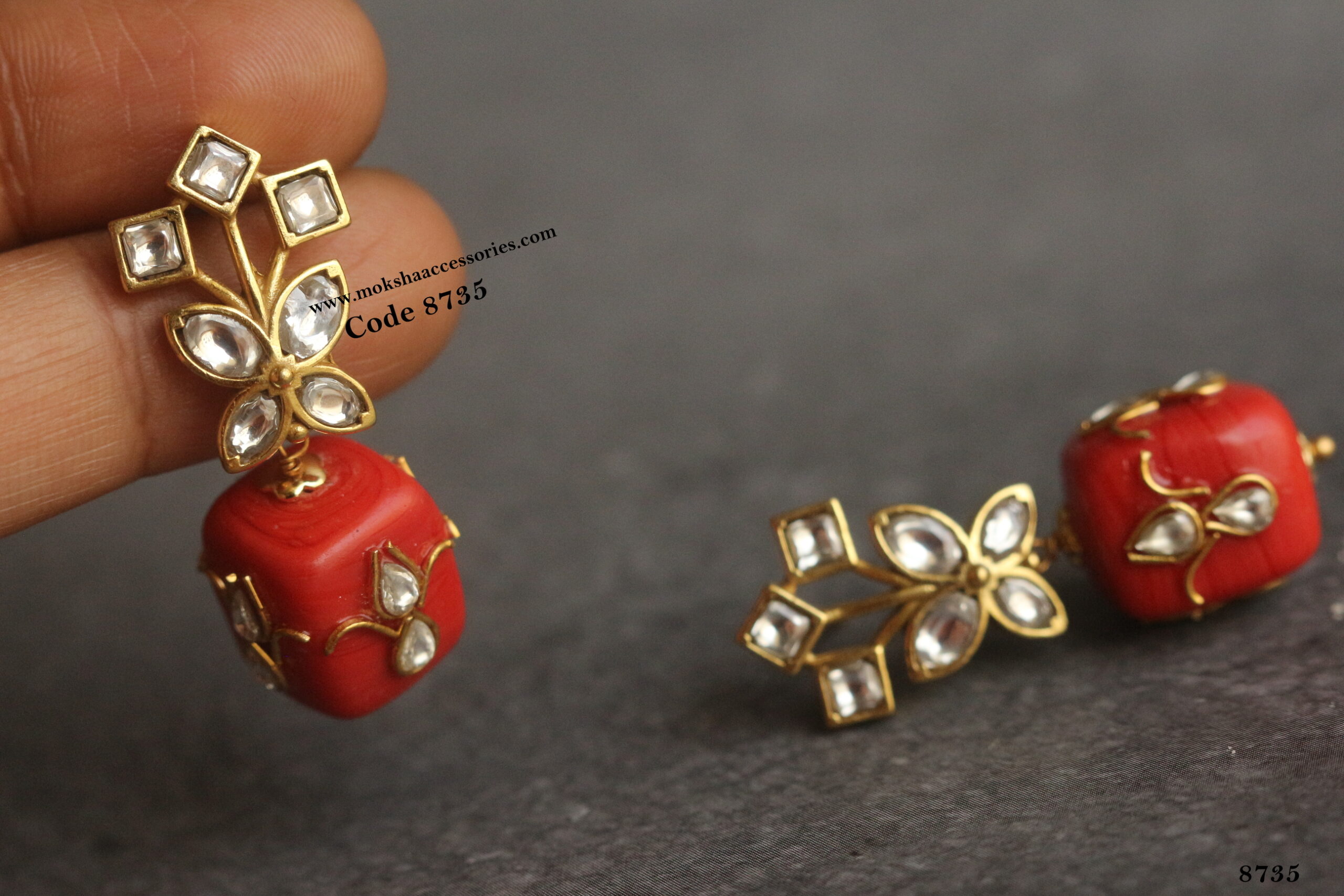 Jadaukundan studs with real coral drops quantity