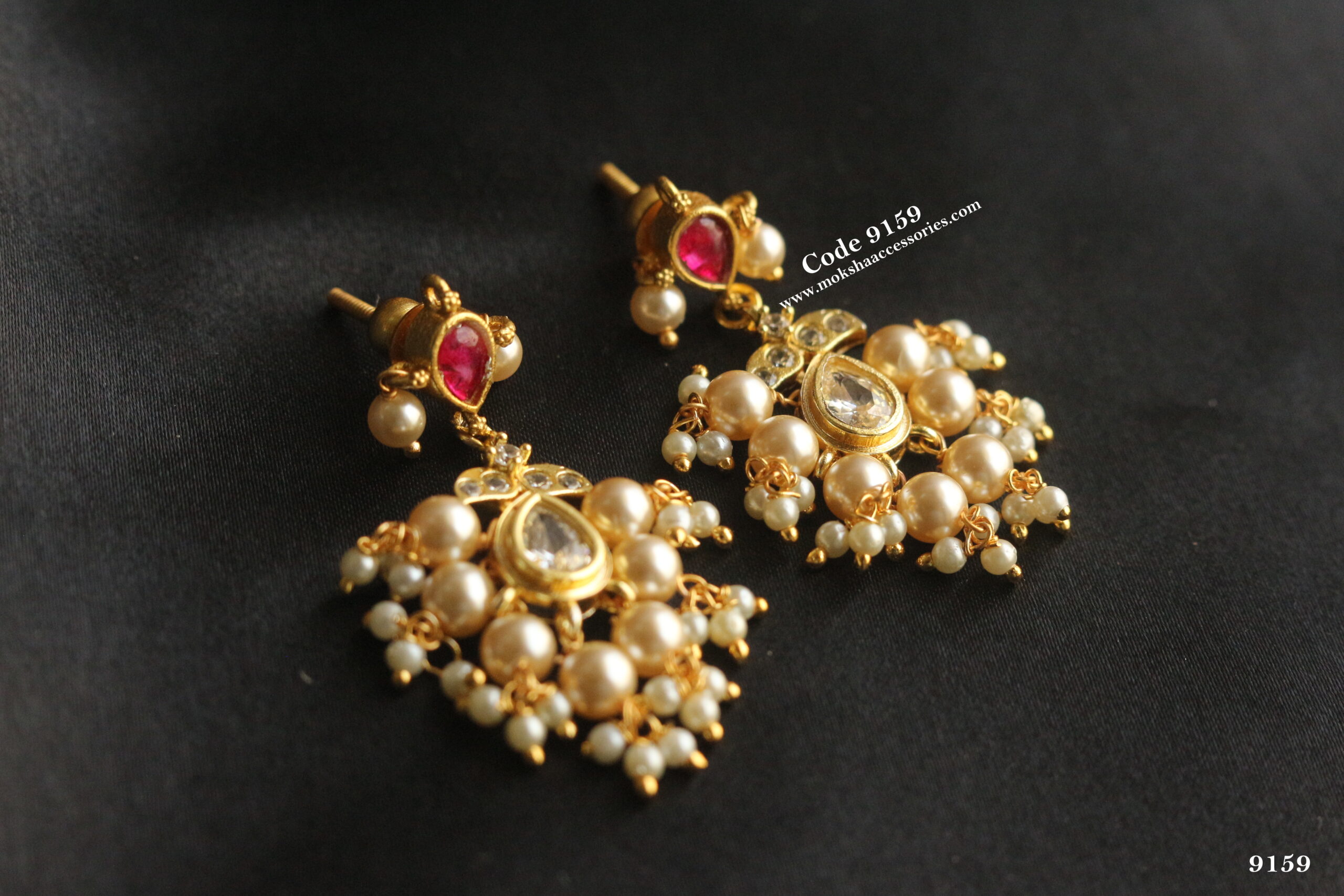 Kundan chandbali earrings with pearl drops quantity