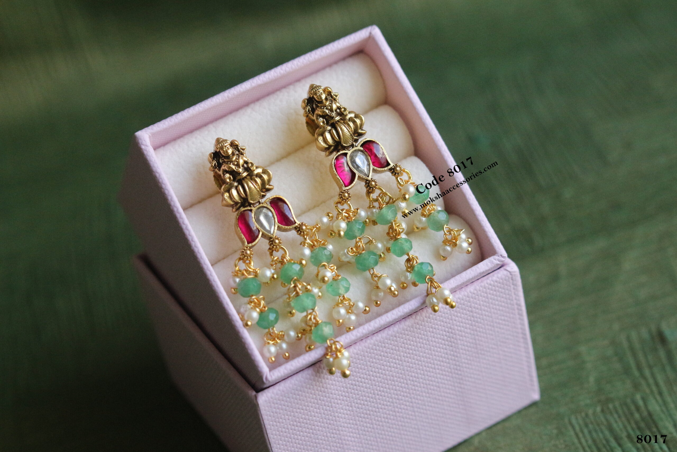 Lakshmi devi earrings with emerald and pearl drops quantity