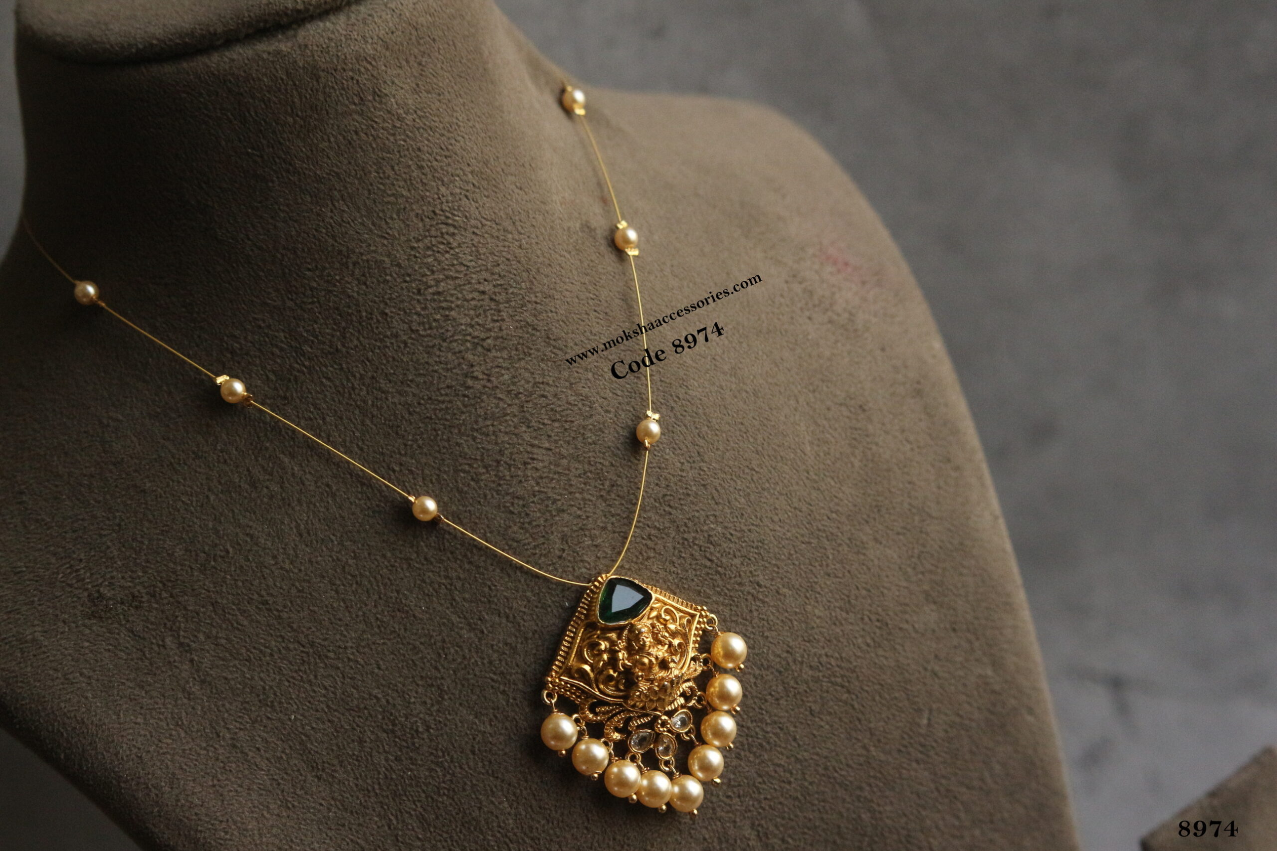 Lakshmi devi pendant with invisible chain and sarvoski pearls quantity