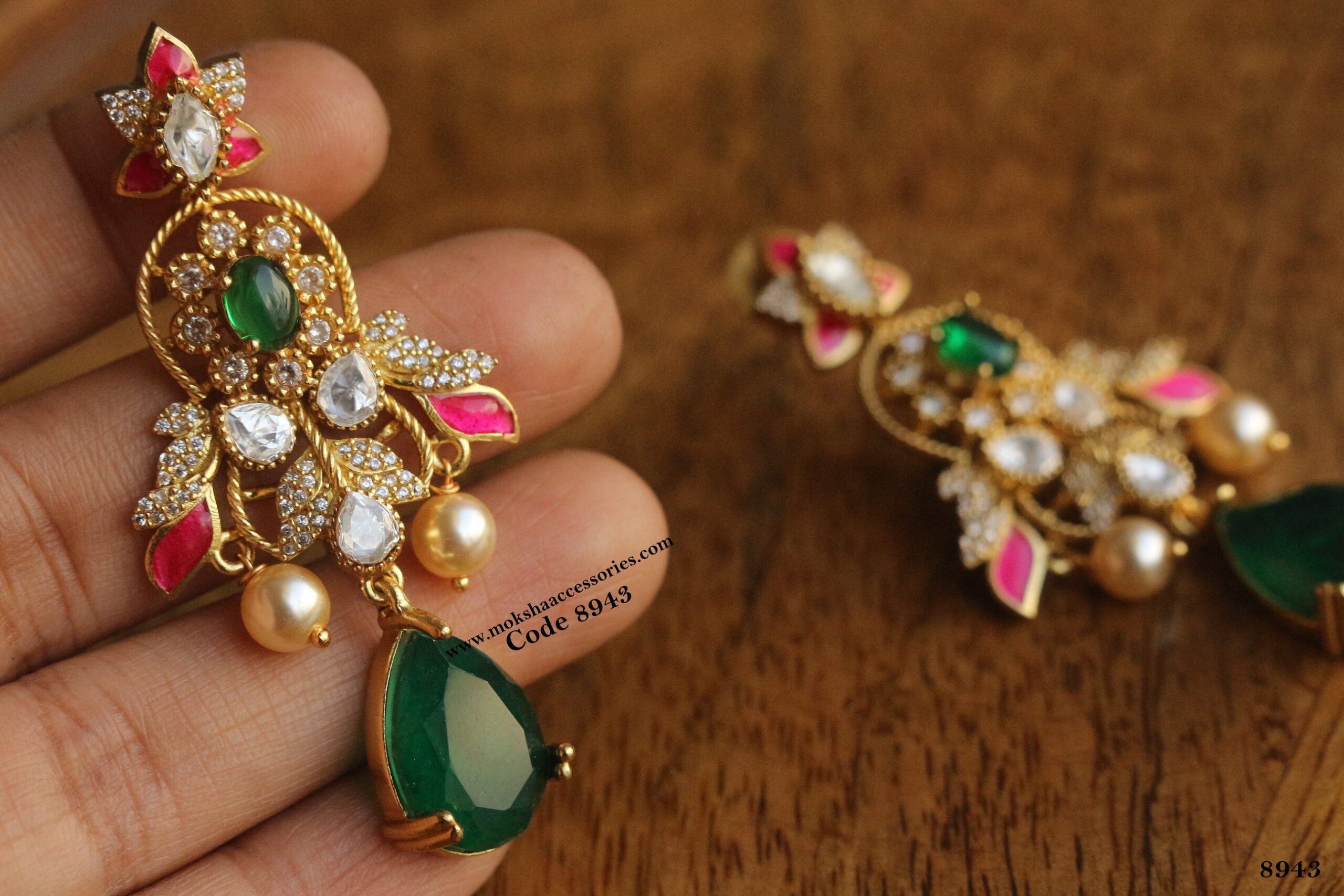 Mozonite, emerald and ruby stone earrings quantity