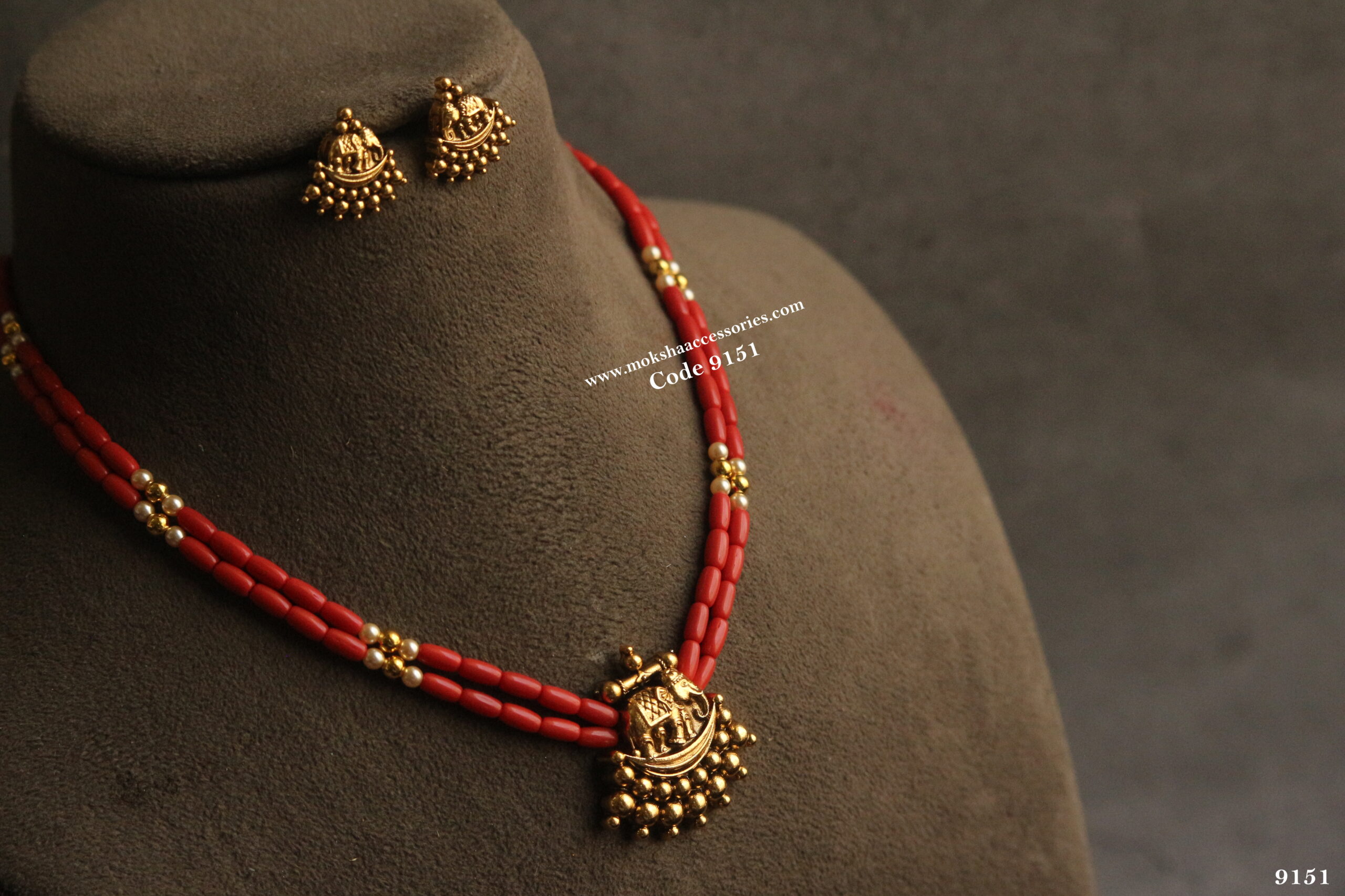 Nakshi gold pendant set with corals and sarovski pearls quantity