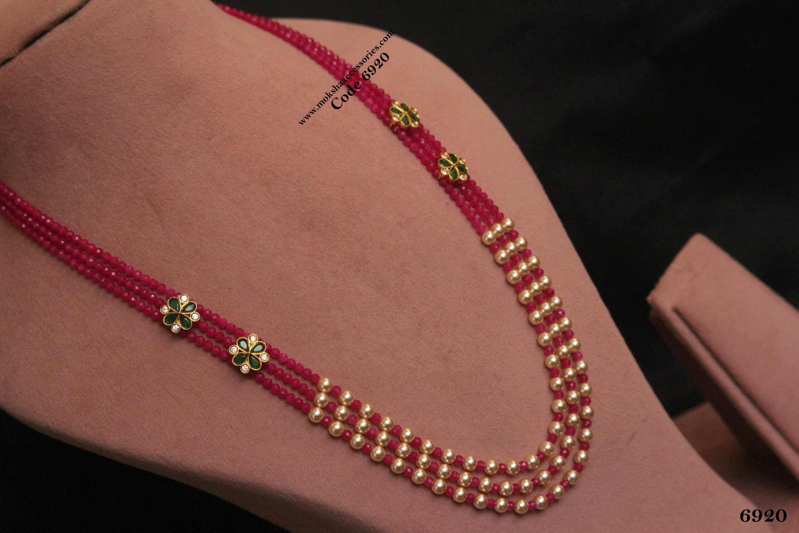Pink and sarvoski beads mala with cz pendants quantity