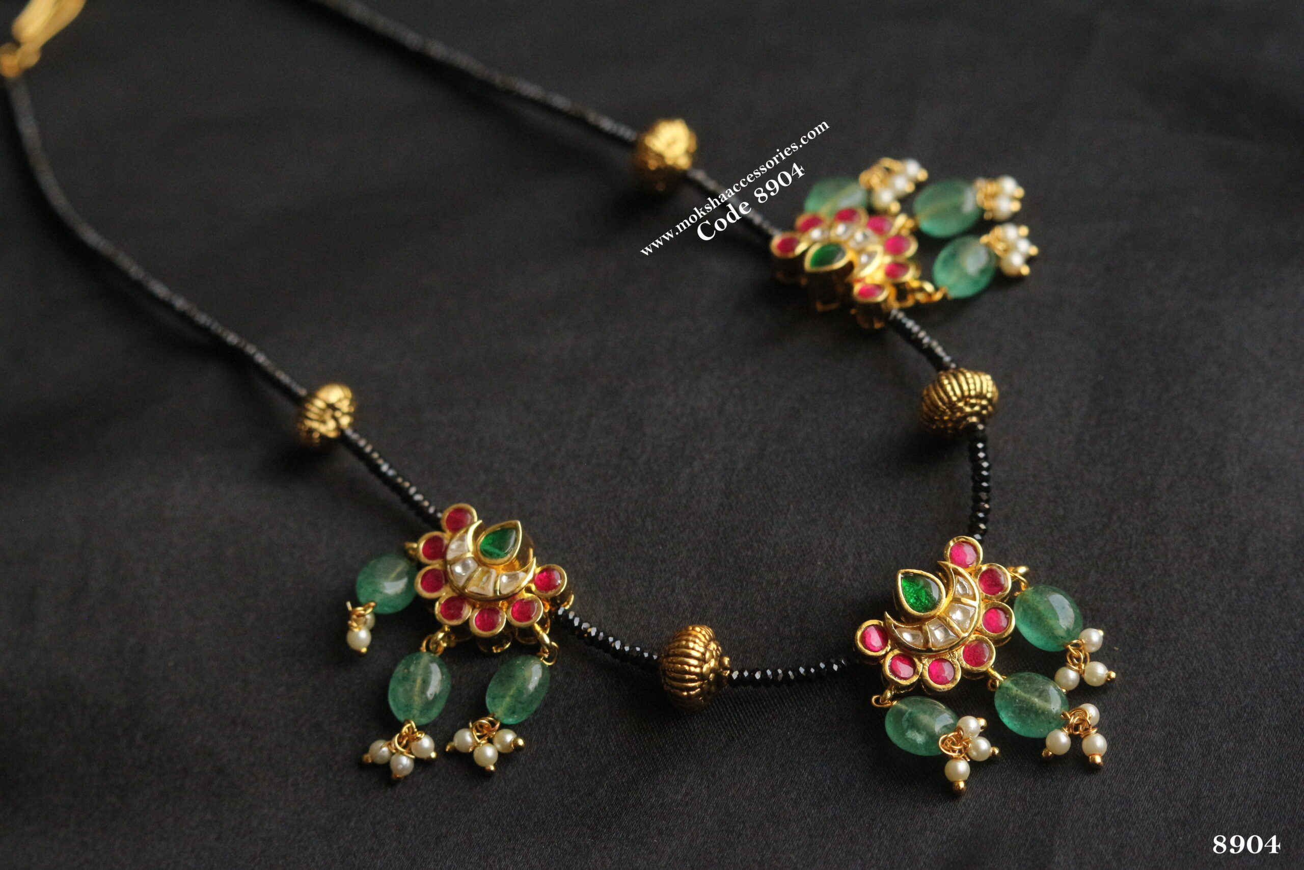 Real black beads with jadaukundan pendants and nakshi gold balls quantity