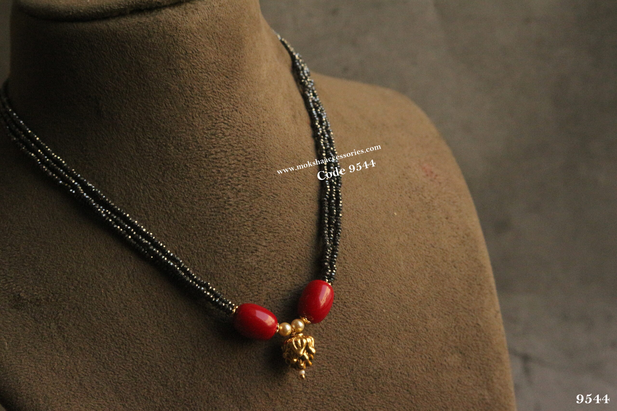 Black beads with kundan pendant