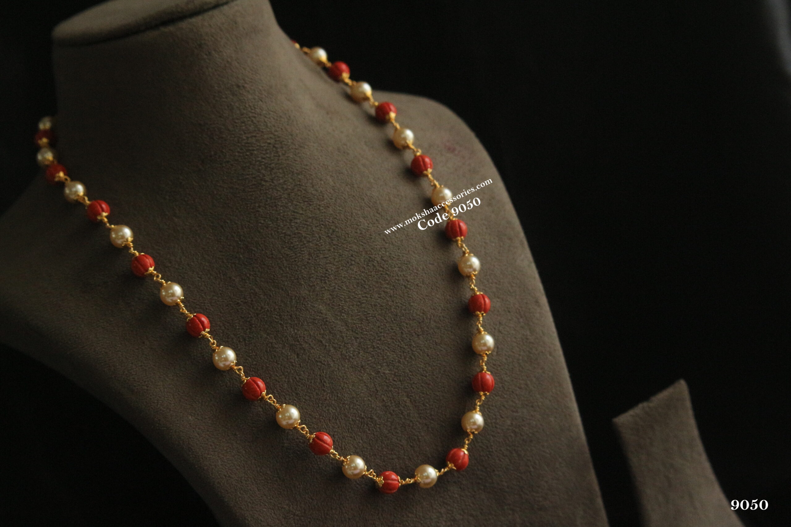 Real coral pumpkin and sarvoski pearl mala quantity