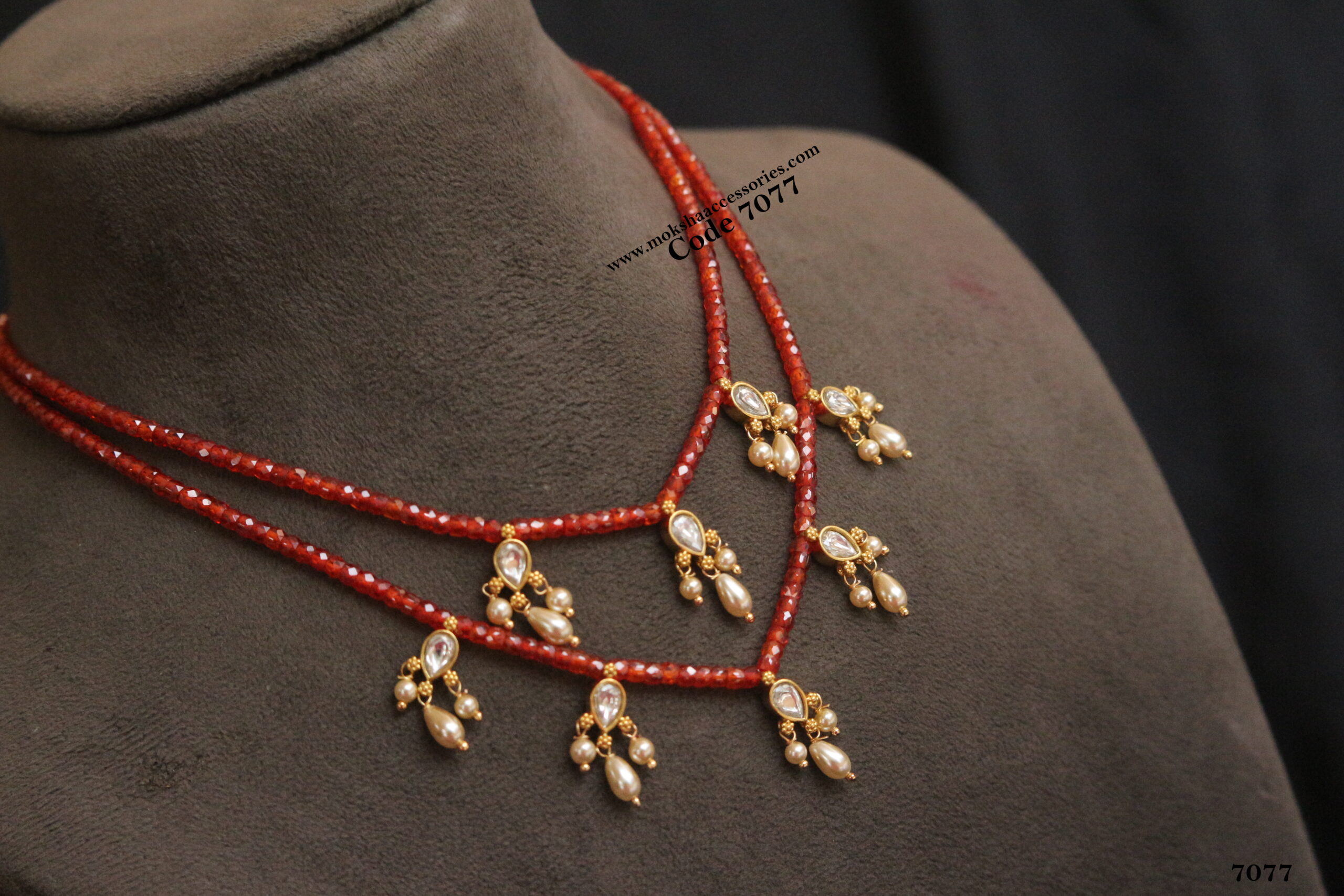 Real cz coral beads with jadaukundan pendants and sarvoski pearl drops quantity