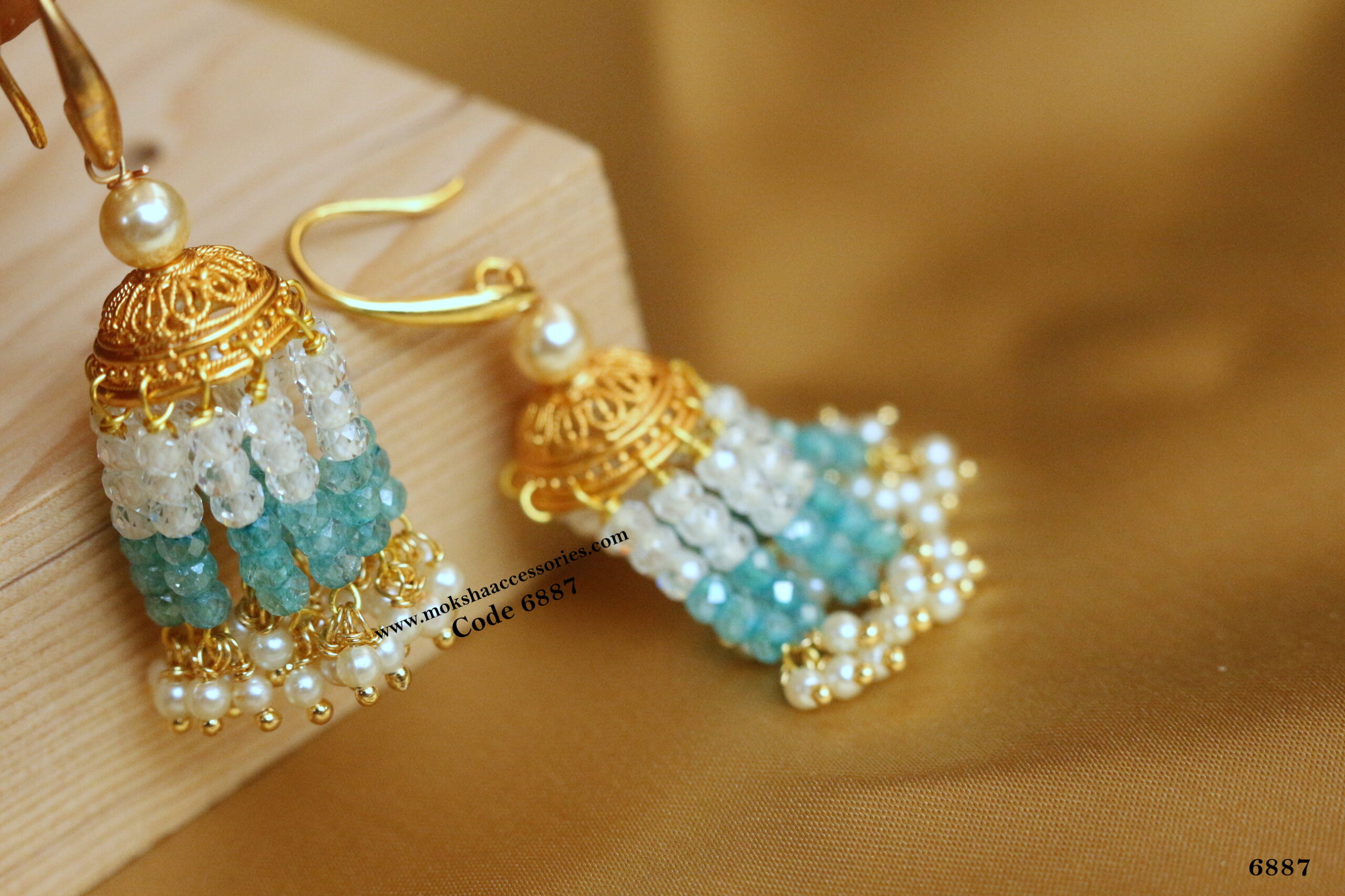 Emerald studs with monalisa and sarvoski pearl jhumki