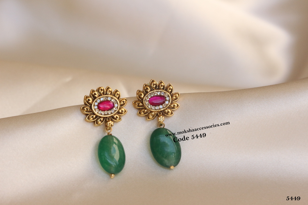Ruby stone earrings with emerald drop